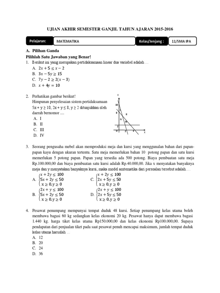 Soal jawaban uas ips kelas xi semester 11. Soal yang admin bagikan ini diharapkan dapat memberikan manfaat dalam kegiatan belajar mengajar yang bapak dan ibu laksanakan, dan sebagai soal untuk digunakan dalam kegiatan pts uts di tahun 2018. Mulai dari logika matematika, notasi sigma, induksi matematika, pertidaksamaan linear dua variabel, program linear dua variabel, matriks, baris dan deret, limit fungsi aljabar, turunan fungsi aljabar, sampai. Dikarenakan banyak pemformatan rumus yang tidak sesuai dengan fitur blogger. Kunci jawaban soal latihan penilaian akhir semester pas uas kelas 11 sma matematika semester 1 tribun pontianak.